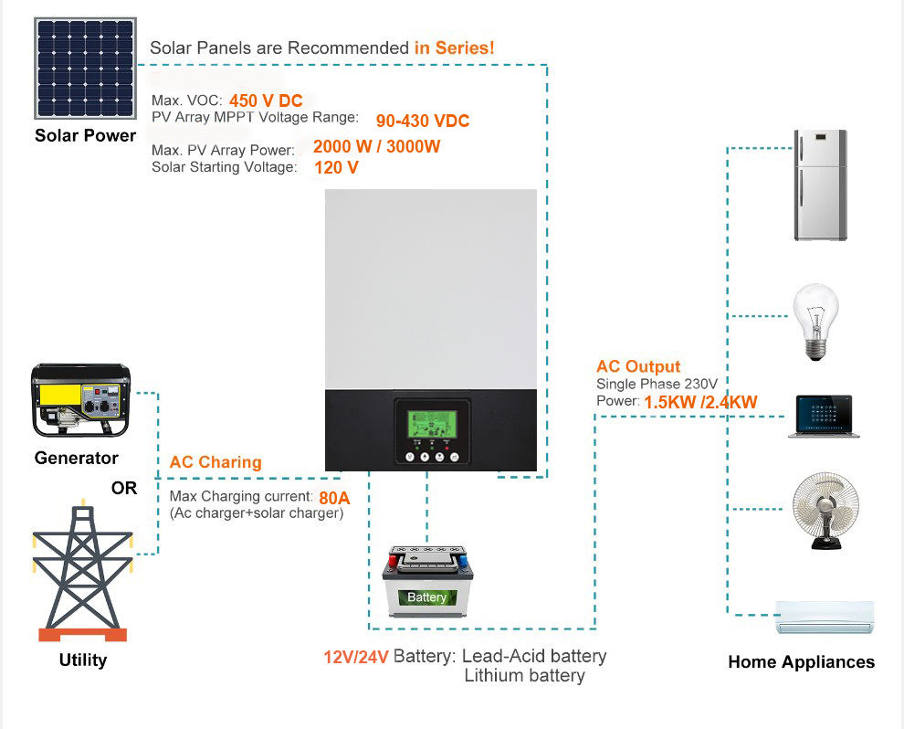 Be the first to review “3kW MPPT Pure Sine Wave Single Phase Hybrid Solar Inverter with WiFi Monitoring for Home Solar Backup and Storage System” Cancel reply