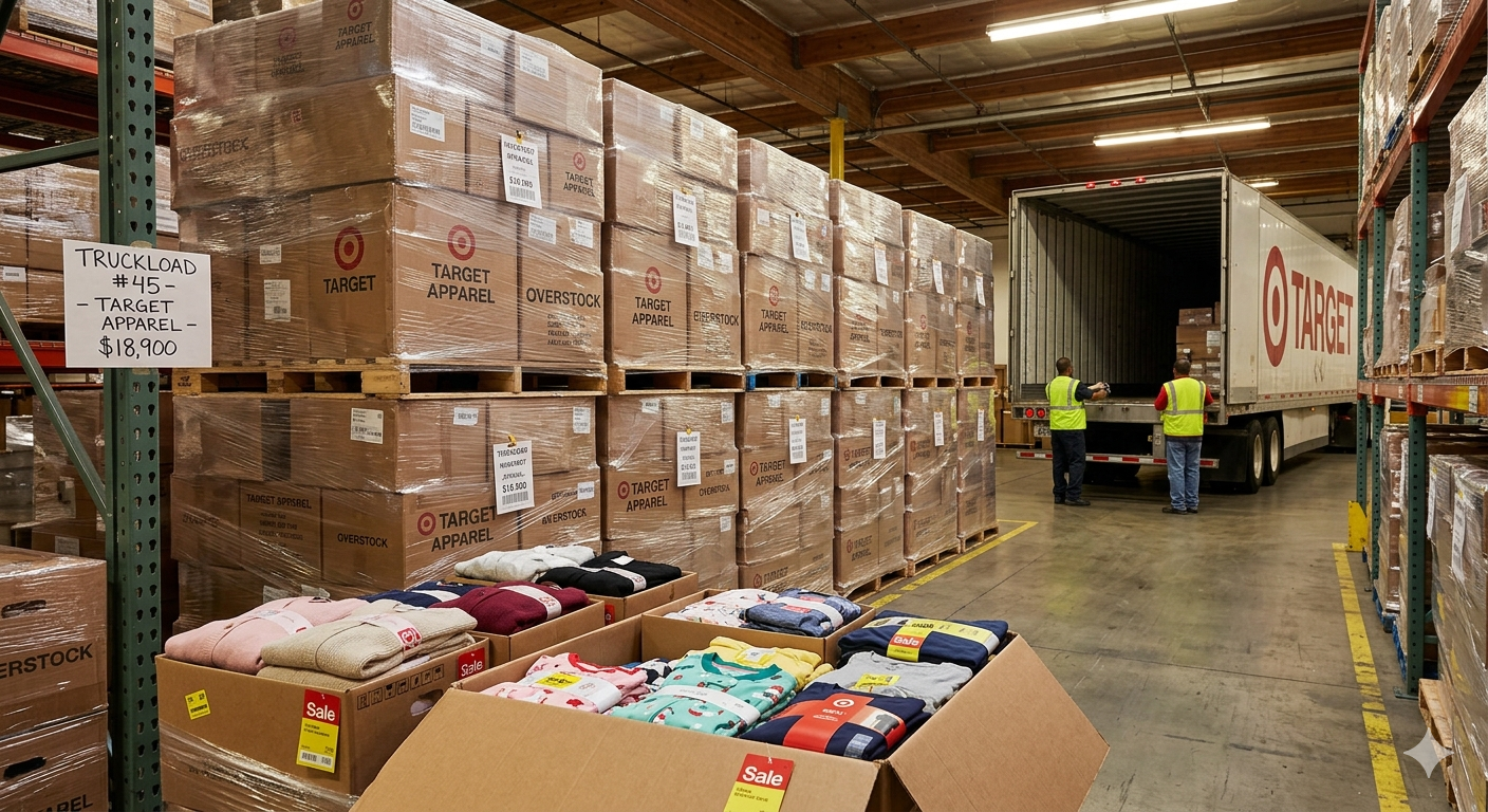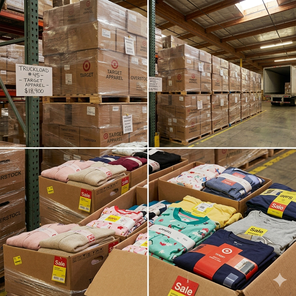 Bulk wholesale order for Target Overstock Clothing. Includes men’s, women’s, and children’s apparel, assorted sizes, and seasonal styles.
